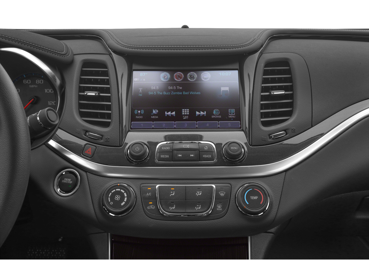 - AUDIO SYSTEM CHEVROLET INFOTAINMENT SYSTEM WITH 8" DIAGONAL COLOR TOUCH-SCREEN AM/FM STEREO with seek-and-scan and digital clock includes Bluetooth® streaming audio for music and select phones; voice-activated technology for radio and phone; featuring Android Auto and Apple CarPlay capability for compatible phone and Shop with the ability to browse select and install apps to your vehicle. Apps include Pandora iHeartRadio The Weather Channel and more (STD)