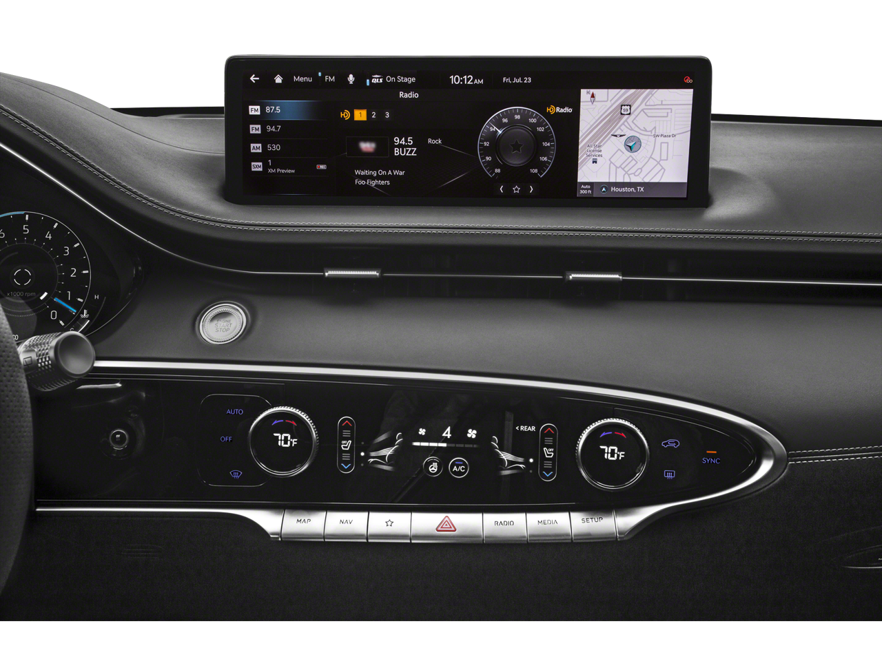 - Radio: AM/FM/SiriusXM/HD Premium Audio System -inc: navigation system, 9 speakers, internal amplifier, 14.5" HD display screen, Apple CarPlay and Android Auto, Bluetooth® hands-free phone system w/audio streaming, 4 USB ports and Genesis Connected Services